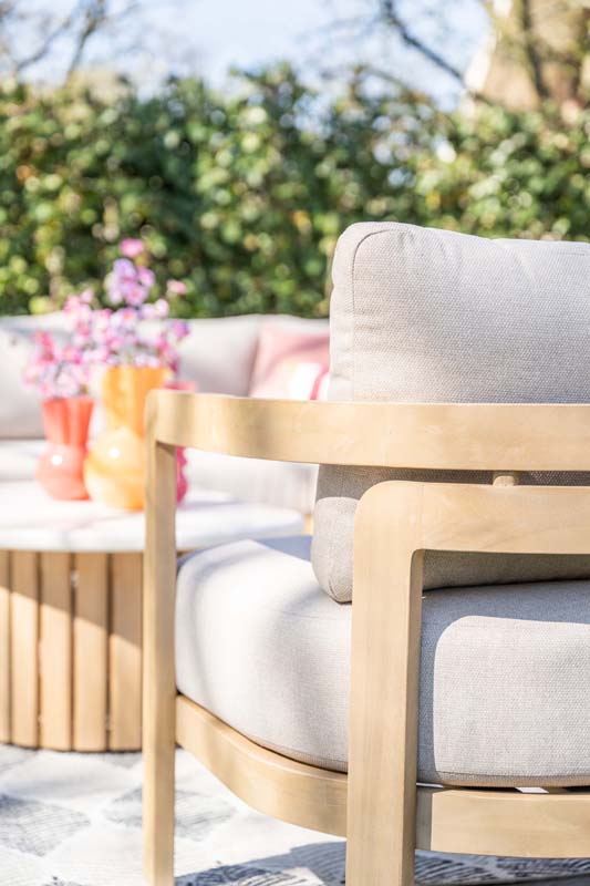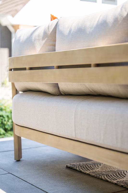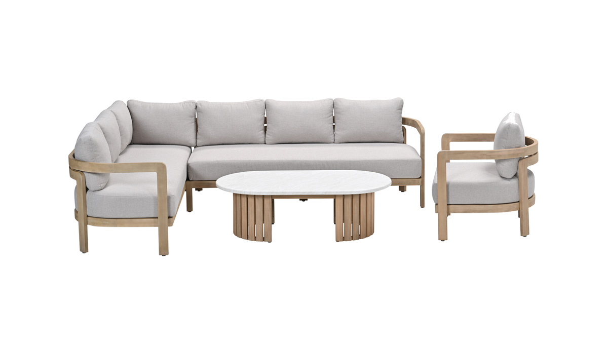 Srdcem této soupravy je velkoryse řešená rohová zahradní sedačka, která je chytře složena ze dvou samostatných zahradních pohovek. Toto modulární řešení umožňuje snadnou manipulaci. Dominantou celé sestavy je její robustní konstrukce z kvalitního akáciového dřeva, která působí vzdušně a zároveň stabilně. Klíčovým prvkem, který tuto soupravu odlišuje, je mimořádně silné a hluboké polstrování sedáků i opěrek. Měkké, ale pevné polštáře poskytují bezkonkurenční pohodlí, které vás bude lákat k dlouhým hodinám odpočinku, čtení knihy nebo konverzaci s blízkými. Potahy z vysoce odolné venkovní textilie jsou nejen příjemné na dotek, ale také navrženy tak, aby odolávaly povětrnostním vlivům a snadno se udržovaly.