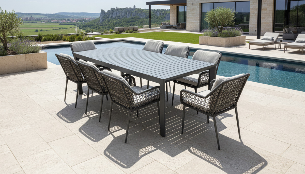 Proměňte svou terasu či zahradu v elegantní prostor pro rodinné oslavy a setkání s přáteli. Zahradní jídelní souprava Aventa nabízí ideální řešení pro venkovní stolování s důrazem na moderní design, maximální pohodlí a praktickou funkčnost.