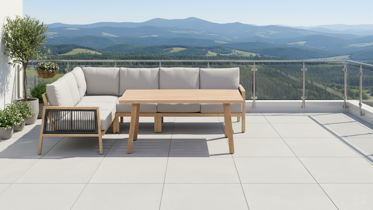 Představujeme Gossau5 Corner – revoluční rohovou sedací soupravu, která mistrně klame tělem! Na první pohled byste ji zaměnili za elegantní dřevěný nábytek, ale nenechte se mýlit. Gossau5 Corner je vyrobena z prémiového hliníku s dokonale propracovanou povrchovou úpravou hliniku v designu dřeva, která dodá vaší terase hřejivý a přírodní vzhled bez starostí spojených s údržbou dřeva. Užijte si krásu dřeva a praktičnost moderního materiálu v jednom
