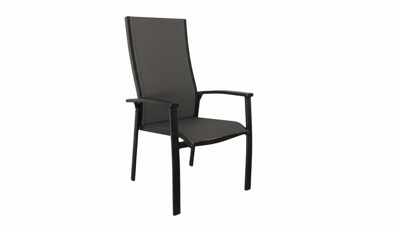 Potah tvoří výplet z prodyšné a vysoce odolné textilie Textilene, která je skvěle elastická a odolná proti roztržení. Vysoký zádová opěrka je pro maximální pevnost a pohodlí tvořena dvojitým výpletem. Tento prvek dodává křeslu jedinečný design a zajišťuje fantastický komfort sezení. V případě potřeby úspory místa je křeslo prakticky stohovatelné.