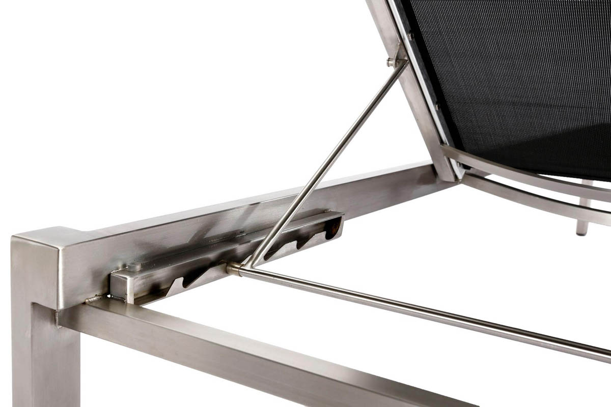 Nerezový zahradní nábytek Steln, kde rám tohoto elegantního zahradního lehátka je vyroben z vysoce kvalitní nerezové oceli V304. Díky tomu je lehátko mimořádně stabilní, odolné a má dlouhou životnost. Nerezová konstrukce je odolná proti korozi, povětrnostním vlivům a velmi snadno se čistí.