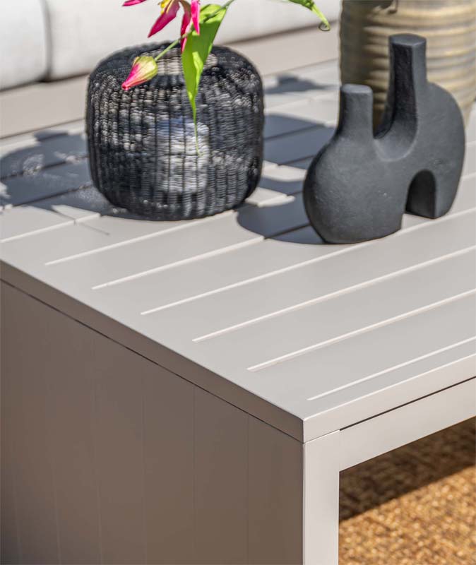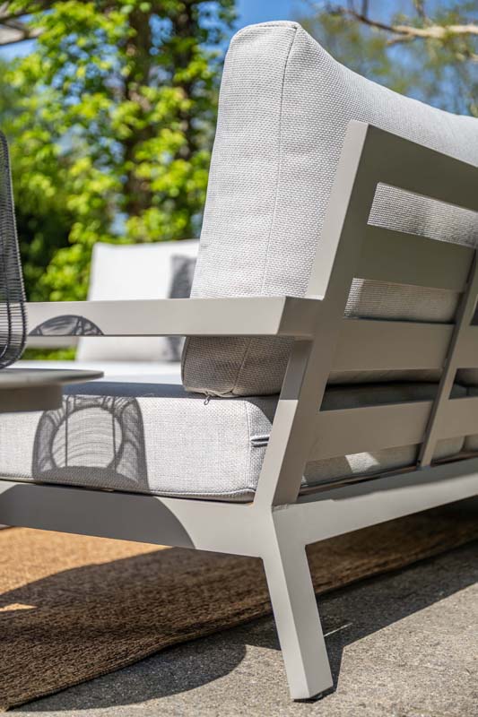 Jádrem sedací soupravy Harmony7 Corner je robustní hliníková konstrukce, která zaručuje mimořádnou pevnost, stabilitu a dlouhou životnost. Hliník je známý svou odolností vůči povětrnostním vlivům, jako je déšť, slunce a mráz, a zároveň je rezuvzdorný. Díky nízké hmotnosti je nábytek snadno přenosný, což oceníte při sezónních úpravách nebo úklidu. Povrchová úprava hliníku navíc dodává nábytku sofistikovaný matný vzhled a usnadňuje jeho údržbu – stačí otřít vlhkým hadříkem.