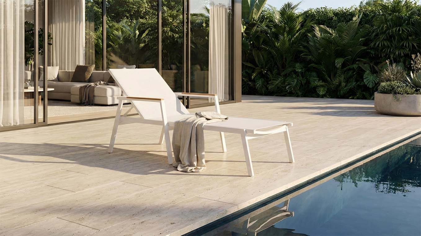 Lehátko Ferrara Sand je navrženo pro maximální venkovní relaxaci. Díky hliníkovému rámu je lehké a odolné, ideální pro použití u bazénu nebo na terase. Sedák a opěradlo jsou vyrobeny z prodyšného a elastického Textilenu, tento materiál je extrémně odolný proti roztržení, povětrnostním vlivům a zajišťuje pohodlí za každého počasí, žádné další polstry nejsou potřeba, zatímco teakové područky dodávají přírodní eleganci. Lehátko je nastavitelné do 4 poloh, takže si můžete najít ideální úhel pro odpočinek. Navíc je stohovatelné, což usnadňuje jednodušší skladování, když se lehátko nepoužívá. Perfektní pro vytvoření sofistikovaného a funkčního venkovního prostoru.