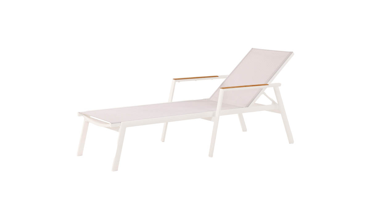Lehátko Ferrara Sand je navrženo pro maximální venkovní relaxaci. Díky hliníkovému rámu je lehké a odolné, ideální pro použití u bazénu nebo na terase. Sedák a opěradlo jsou vyrobeny z prodyšného a elastického Textilenu, tento materiál je extrémně odolný proti roztržení, povětrnostním vlivům a zajišťuje pohodlí za každého počasí, žádné další polstry nejsou potřeba, zatímco teakové područky dodávají přírodní eleganci. Lehátko je nastavitelné do 4 poloh, takže si můžete najít ideální úhel pro odpočinek. Navíc je stohovatelné, což usnadňuje jednodušší skladování, když se lehátko nepoužívá. Perfektní pro vytvoření sofistikovaného a funkčního venkovního prostoru.