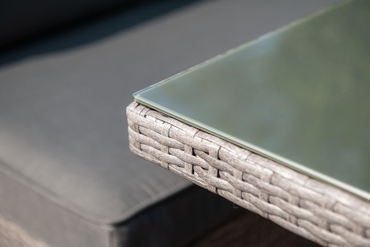 Rám lounge sestavy Dante7 je vyroben z vysoce kvalitního hliníku, který je lehký, stabilní a odolný vůči korozi. Nábytek je potažen ručně vyplétaným umělým ratanem. Tento materiál skvěle odolává povětrnostním vlivům a je velmi nenáročný na údržbu.