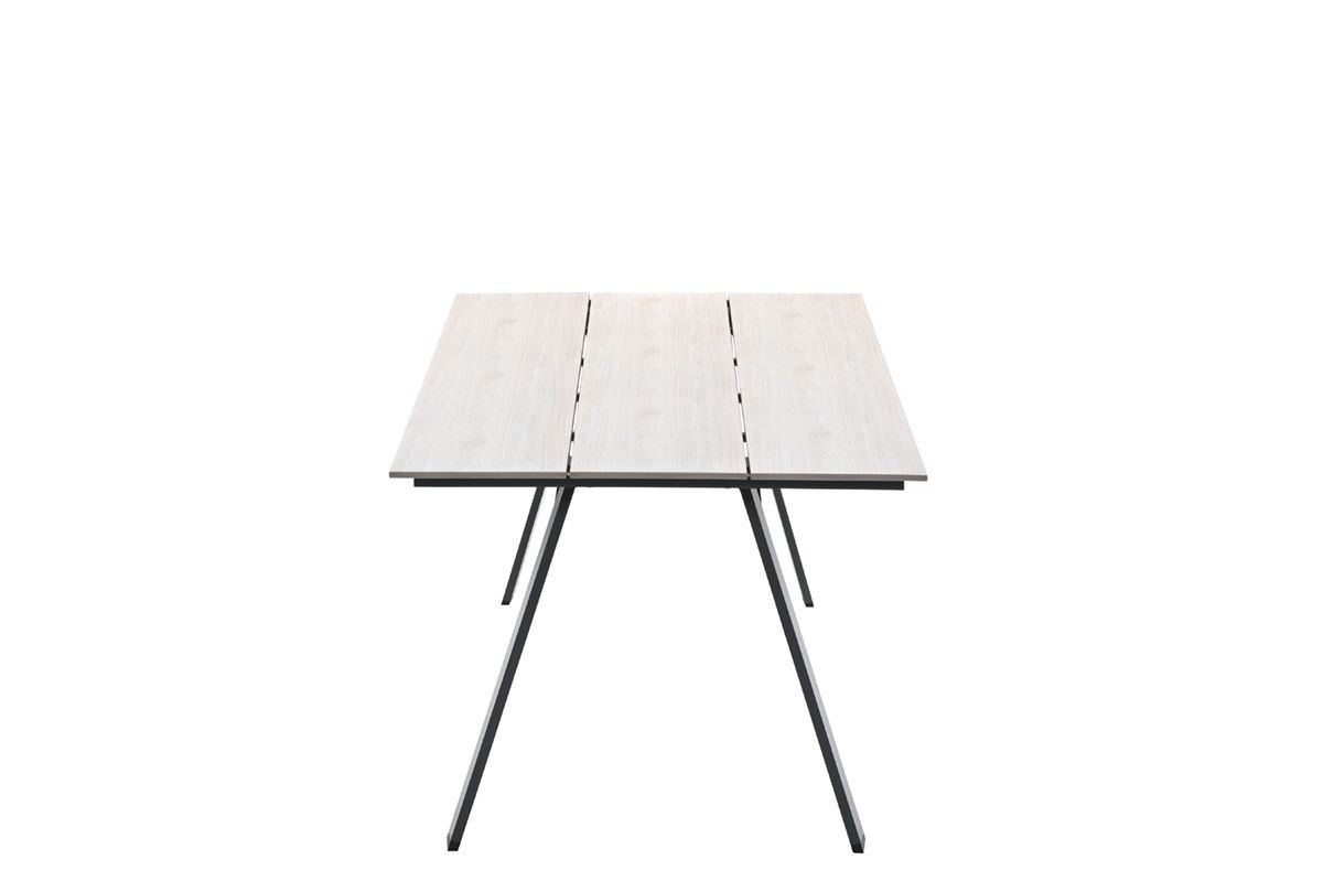 Velkorysý jídelní stůl (240 cm): Prostorný stůl o délce 240x100 cm poskytuje dostatek místa pro celou rodinu i přátele. Deska stolu je vyrobena z moderního a praktického materiálu Polywood, který imituje vzhled dřeva, ale je bezúdržbový a odolný.