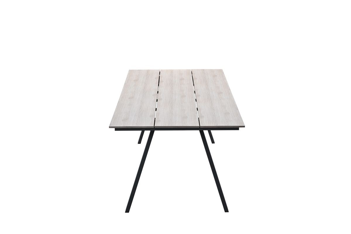 Velkorysý jídelní stůl (205 cm): Prostorný stůl o délce 205x100 cm poskytuje dostatek místa pro celou rodinu i přátele. Deska stolu je vyrobena z moderního a praktického materiálu Polywood, který imituje vzhled dřeva, ale je bezúdržbový a odolný.