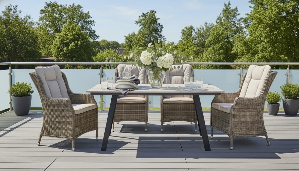 Vytvořte si na své zahradě či terase elegantní prostor pro stolování a odpočinek s naší prémiovou jídelní soupravou. Tento set je navržen tak, aby propojil moderní minimalistický design s maximálním komfortem a odolností vůči povětrnostním vlivům.