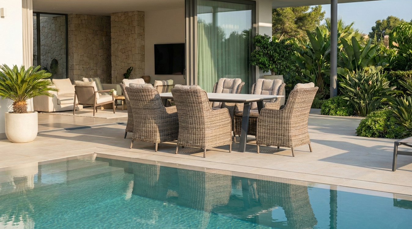 Vytvořte si na své zahradě či terase elegantní prostor pro stolování a odpočinek s naší prémiovou jídelní soupravou. Tento set je navržen tak, aby propojil moderní minimalistický design s maximálním komfortem a odolností vůči povětrnostním vlivům.