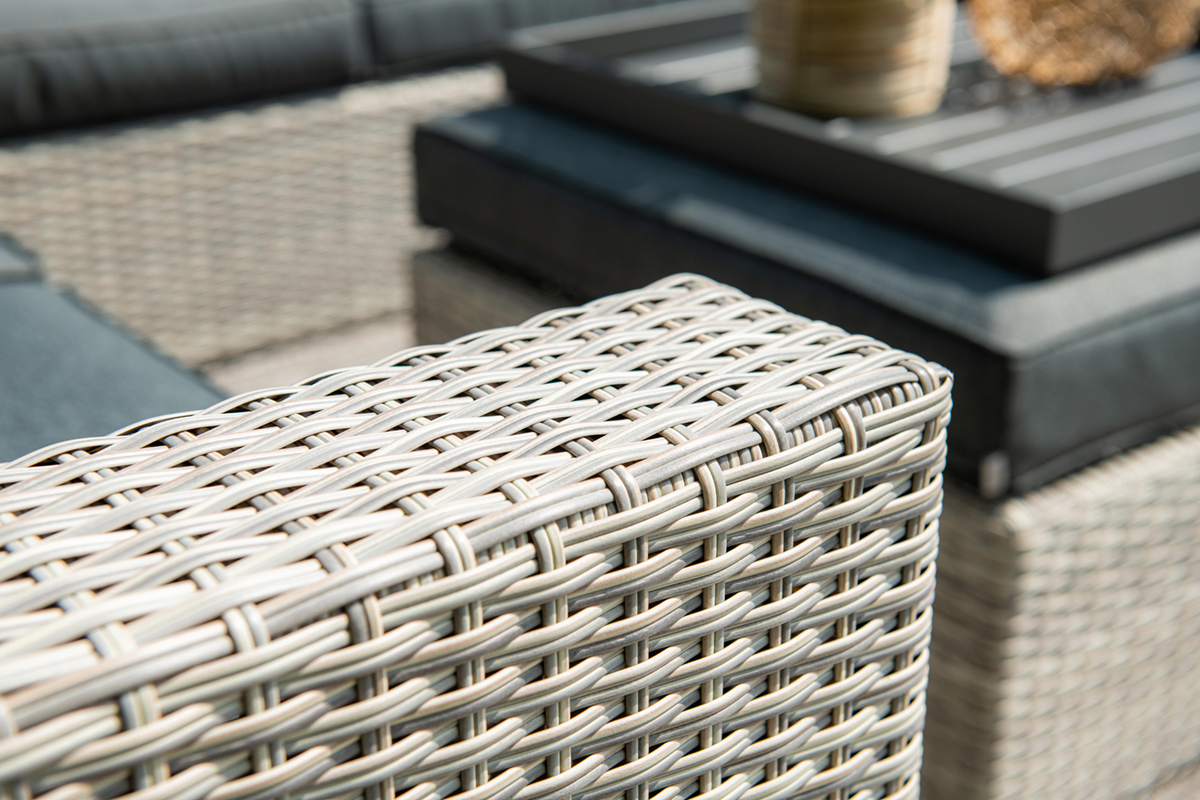 Základem nábytku Adria je odolná konstrukce z hliníkového rámu, který zajišťuje nízkou hmotnost pro snadnou manipulaci a zároveň odolnost vůči korozi a nepříznivým vlivům počasí. Povrch tvoří kvalitní umělý ratan s vysokou barevnou stálostí, který nevyžaduje náročnou údržbu. O maximální pohodlí se starají bohatě plněné polstry z prémiových materiálů, které jsou navrženy pro dlouhou životnost a vysoký komfort při každém usednutí. Díky nadčasovému designu a neutrálním barvám se tato sestava stane elegantní dominantou každé moderní terasy či zahrady.