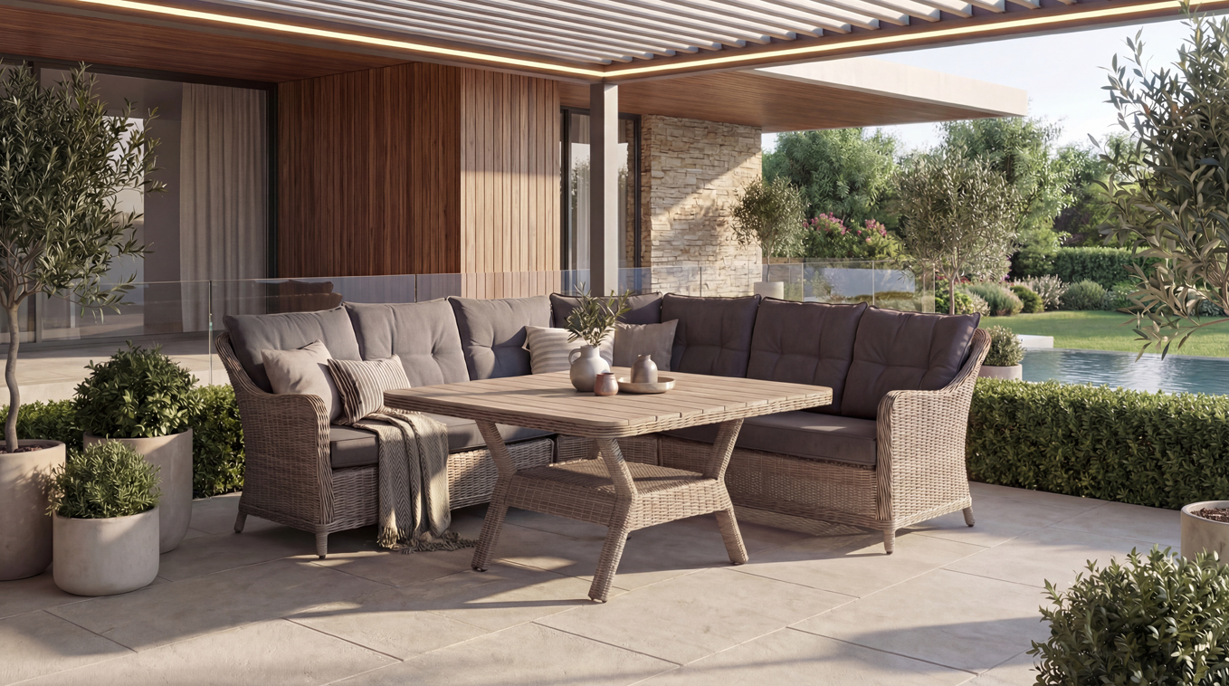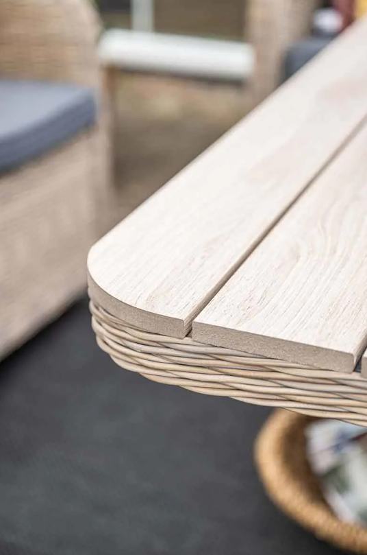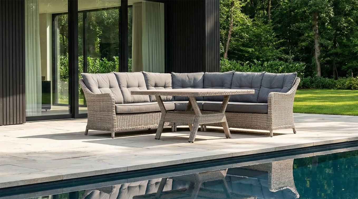 Proměňte svou terasu v oázu klidu s luxusní rohovou ratanovou sedačkou Capri Corner 5, která nabízí dokonalé spojení elegance a funkčnosti. Tato velkorysá souprava je sestavena z pravého a levého rohového modulu, které doplňuje středový díl, čímž vytváří prostorné sezení pro celou rodinu. Součástí setu je praktický čtvercový stůl vybavený vysoce kvalitní deskou z materiálu polywood. Toto inovativní řešení na rozdíl od běžných skleněných desek zabraňuje nežádoucí degradaci ratanového výpletu pod vlivem slunce a zajišťuje tak výrazně delší životnost nábytku. Capri Corner 5 vyniká také mimořádným komfortem díky kvalitnímu a bohatému polstrování, které přímo vybízí k dlouhému odpočinku na čerstvém vzduchu.