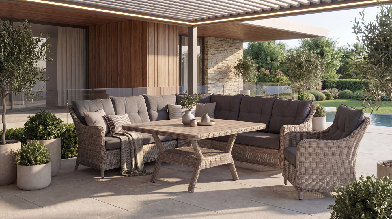 Proměňte svou terasu v oázu klidu s luxusní rohovou ratanovou sedačkou Capri6 Corner, která nabízí dokonalé spojení elegance a funkčnosti. Tato velkorysá souprava je sestavena z pravého a levého rohového modulu, které doplňuje středový díl, čímž vytváří prostorné sezení pro celou rodinu, samostatného ratanového křesla a součástí setu je praktický čtvercový stůl vybavený vysoce kvalitní deskou z materiálu polywood. Toto inovativní řešení na rozdíl od běžných skleněných desek zabraňuje nežádoucí degradaci ratanového výpletu pod vlivem slunce a zajišťuje tak výrazně delší životnost nábytku. Capri6 Corner vyniká také mimořádným komfortem díky kvalitnímu a bohatému polstrování, které přímo vybízí k dlouhému odpočinku na čerstvém vzduchu.