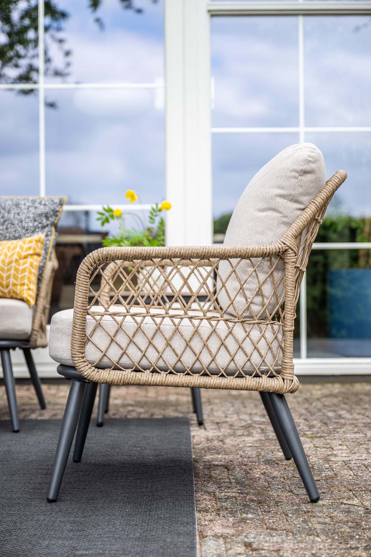 To, co tuto soupravu skutečně odlišuje, je její vysoký jídelní stůl s polywoodovou deskou. Díky němu se z běžné zahradní sedačky stává plnohodnotná jídelní souprava, u které můžete pohodlně stolovat. Nemusíte se již rozhodovat mezi prostorem pro odpočinek a jídelním prostorem – tato souprava nabízí obojí v elegantním a kompaktním provedení.