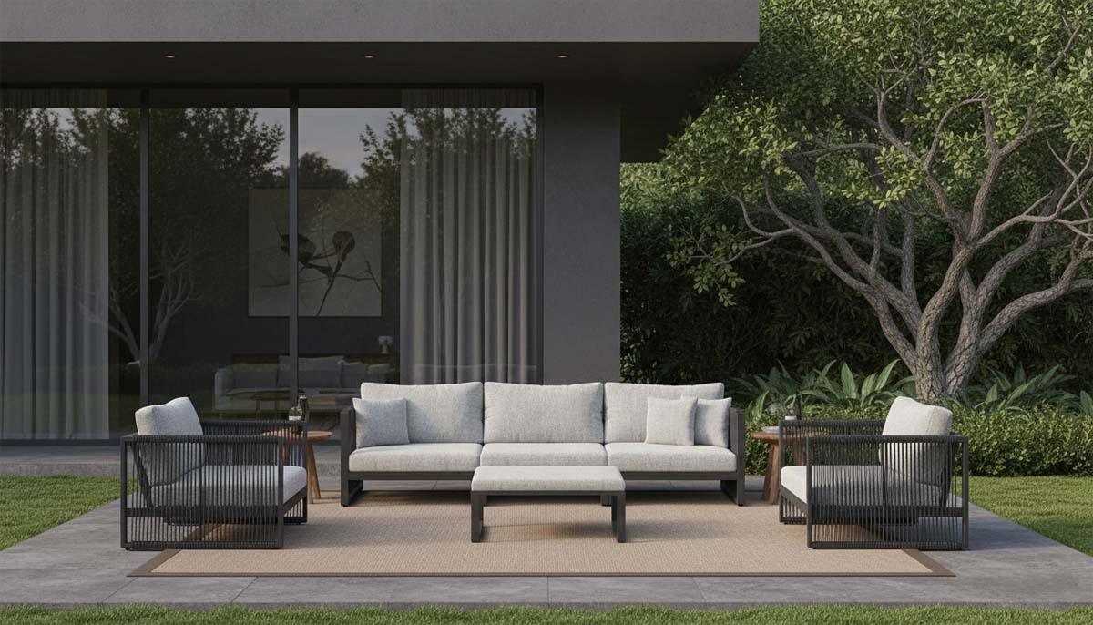 Hledáte designový a současně mimořádně odolný zahradní nábytek, hliníkový sedací set Modern5 Rope je ideální volba. Hliníkový rám, odnímatelné polstry a vyměnitelné potahy splňují požadavky na moderní zahradní nábytek - minimální údržba, dokonalý, čistý design a pohodlí. Odolný rám, všechny potahy osazeny zipem a v případě potřeby zakoupíte nové, činí z tohoto venkovního nábytku skvělé dlouhodobé řešení na vaši terasu.