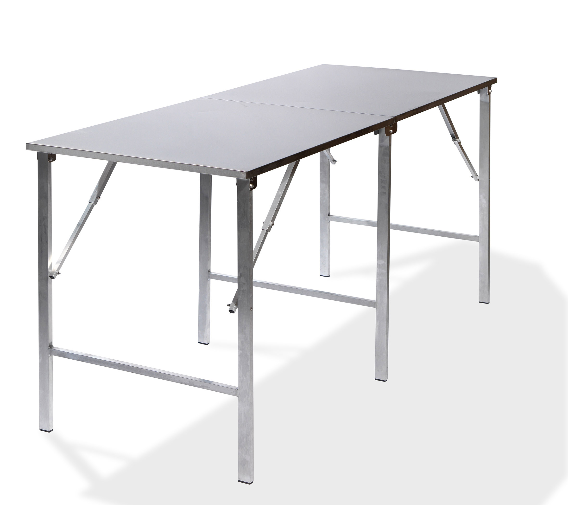 Tento stůl kombinuje robustnost nerezové oceli s praktickou skladností. Díky svému designu nabízí dostatek prostoru pro přípravu pokrmů či servírování, a přitom jej lze po akci snadno složit a transportovat. Je to ideální volba tam, kde hraje roli hygiena, úspora místa a efektivita práce.