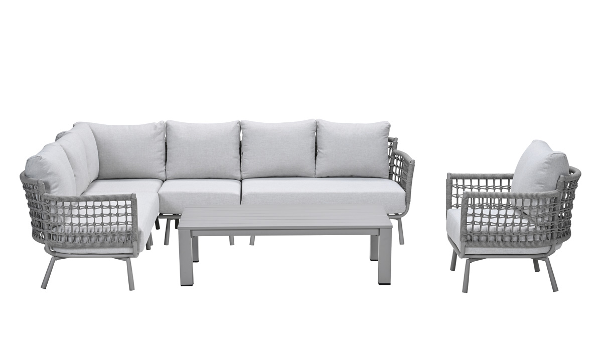 Inovativní Rope výplet: Okouzlující a zároveň vysoce odolný výplet z lana (Rope) v šedo-taupe odstínu dodává sedačce jedinečný charakter a strukturu. Je příjemný na dotek a odolný vůči povětrnostním vlivům.