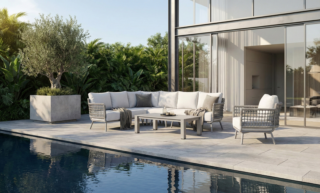 Moderní design s nádechem elegance: Sedací souprava Breeze se pyšní nadčasovými liniemi a sofistikovaným vzhledem. Její design zapadne do každého moderního exteriéru a dodá mu punc luxusu.