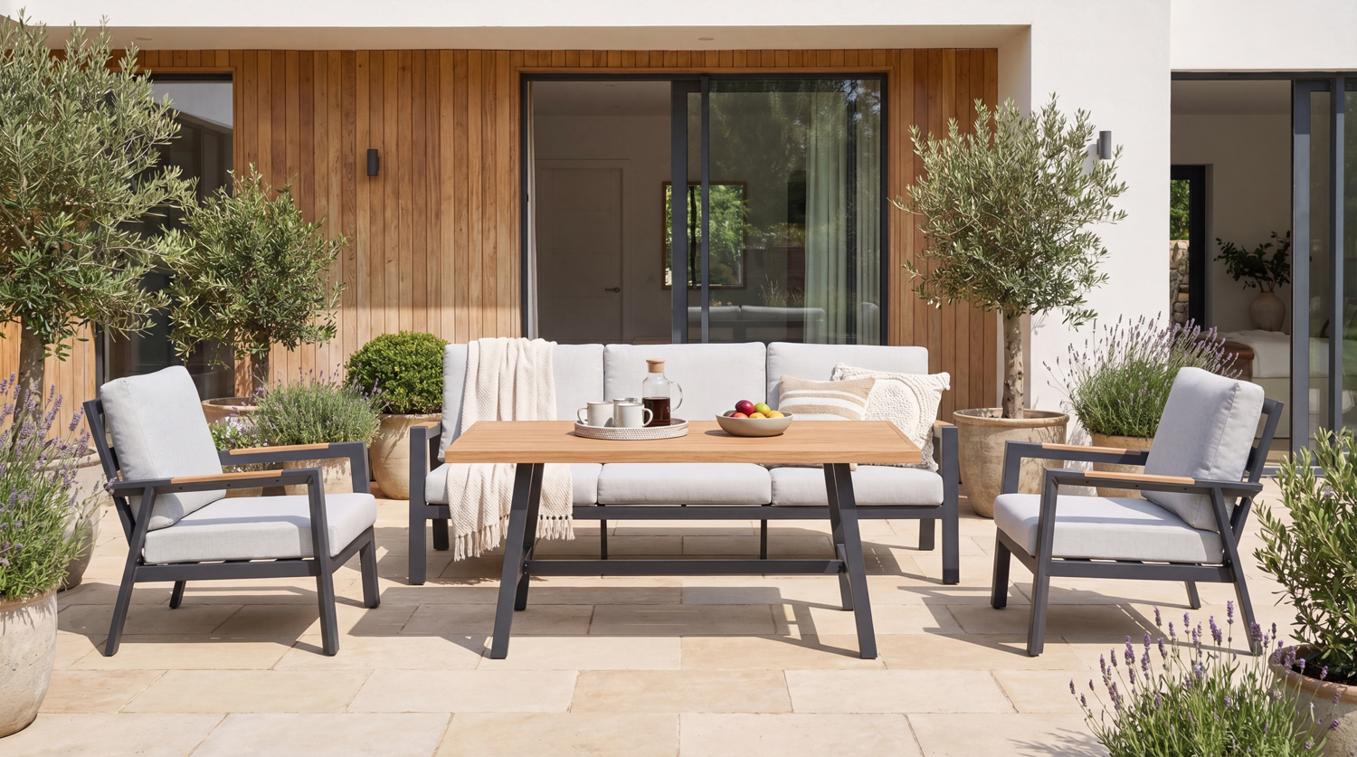 Hliníková zahradní sestava Crena je ideální volbou pro všechny, kteří hledají stylový a praktický nábytek pro svou zahradu nebo terasu.