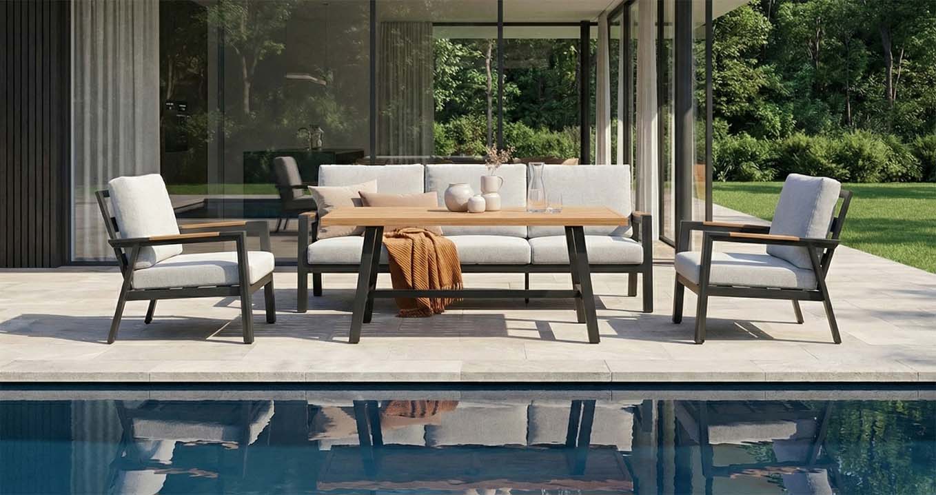 Nespornou výhodou tohoto hliníkového zahradního setu je jeho bezúdržbovost a dokonalý vzhled dřeva na stolové desce a područkách. Díky speciální povrchové úpravě hliníku vypadá tento prvek naprosto realisticky a dodává sestavě elegantní vzhled, bez pravidelné nutnosti údržby dřeva klasického.