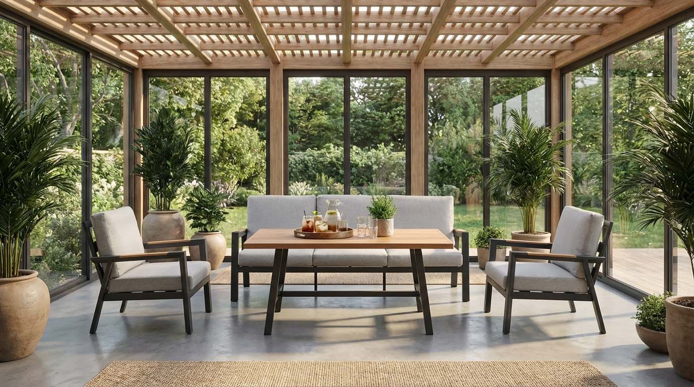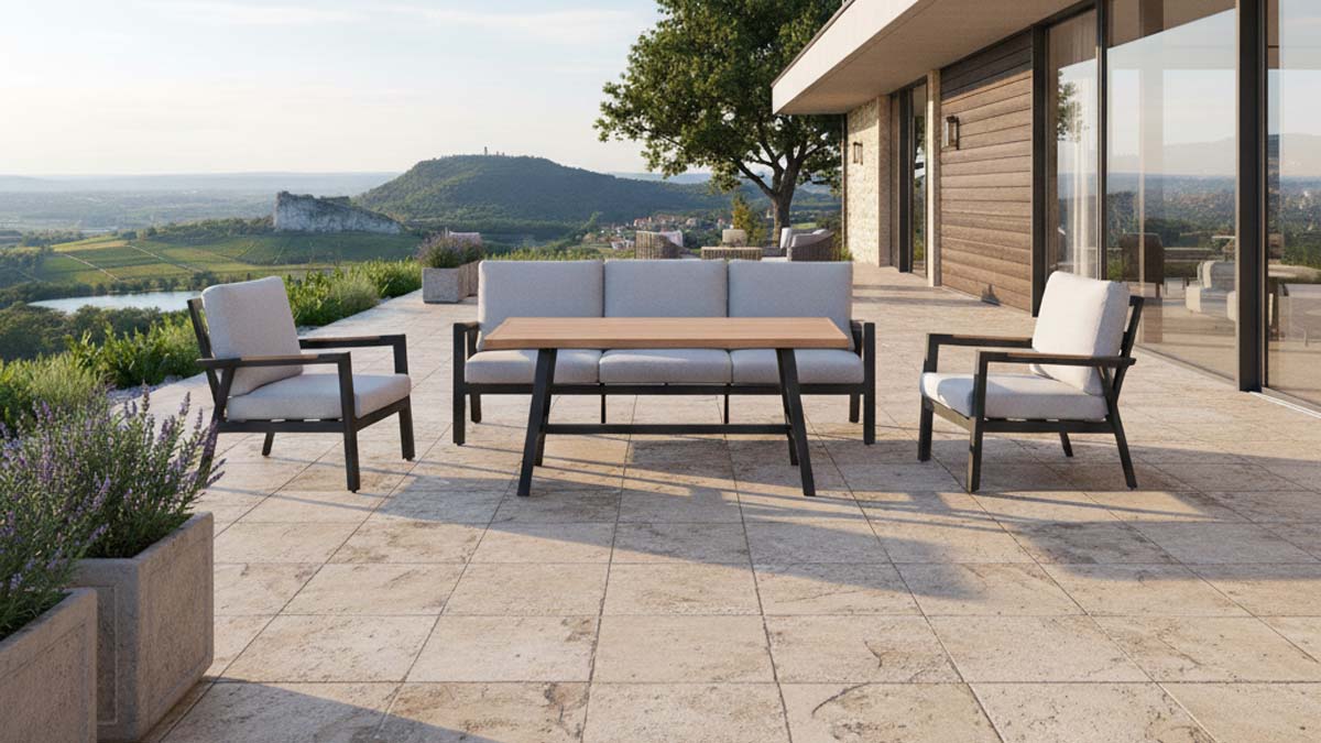 Hliníková zahradní sestava Crena je ideální volbou pro všechny, kteří hledají stylový a praktický nábytek pro svou zahradu nebo terasu.