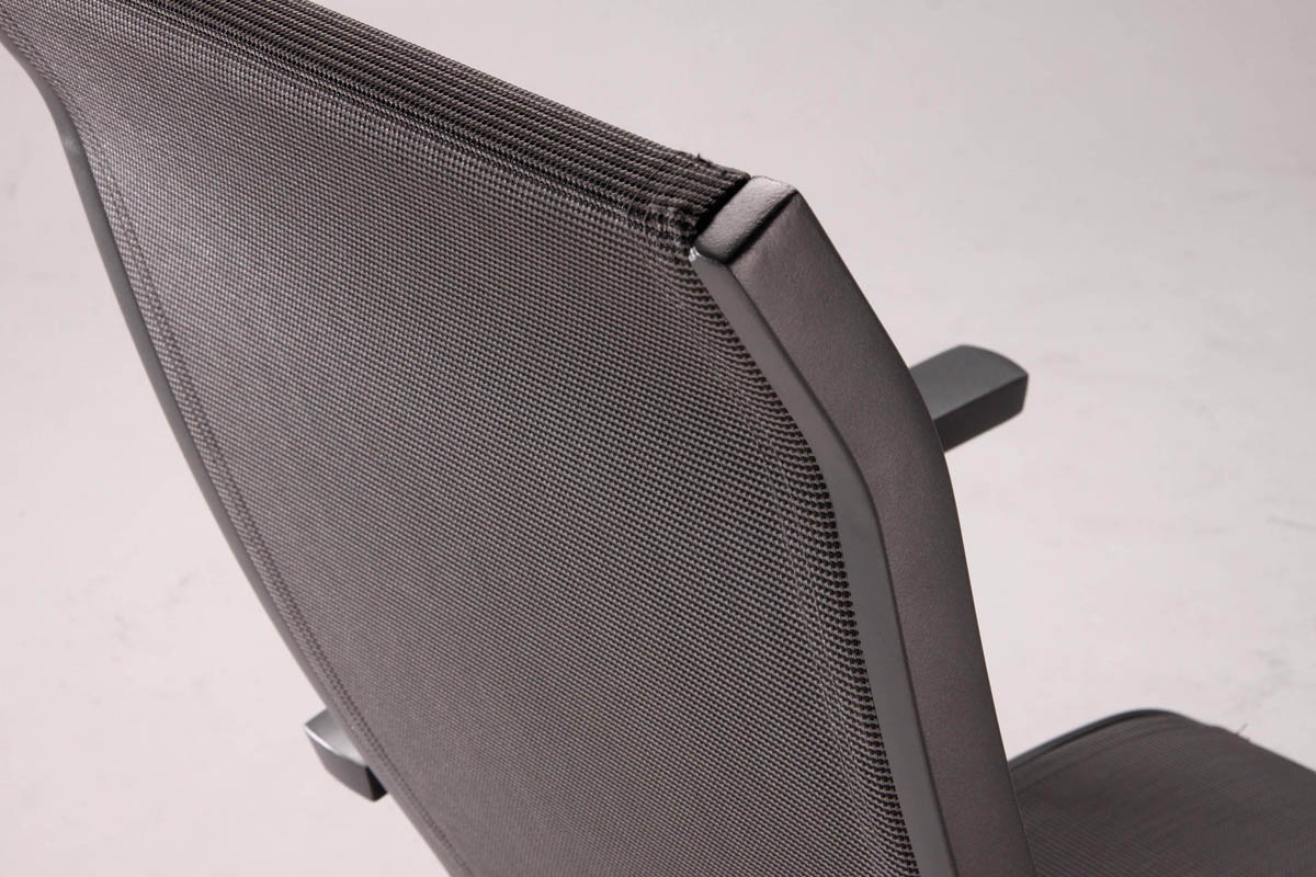 Potah tvoří výplet z prodyšné a vysoce odolné textilie Textilene, která je elastická a odolná proti roztržení. Zádová opěrka je pro maximální pevnost a pohodlí tvořena dvojitým výpletem. Tento prvek dodává křeslu jedinečný design a zajišťuje fantastický komfort sezení.