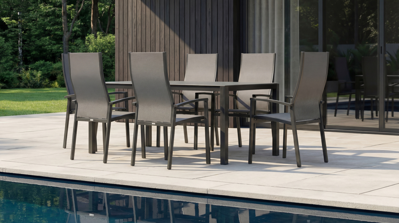 Potah tvoří výplet z prodyšné a vysoce odolné textilie Textilene, která je skvěle elastická a odolná proti roztržení. Vysoký zádová opěrka je pro maximální pevnost a pohodlí tvořena dvojitým výpletem. Tento prvek dodává křeslu jedinečný design a zajišťuje fantastický komfort sezení. V případě potřeby úspory místa je křeslo prakticky stohovatelné.