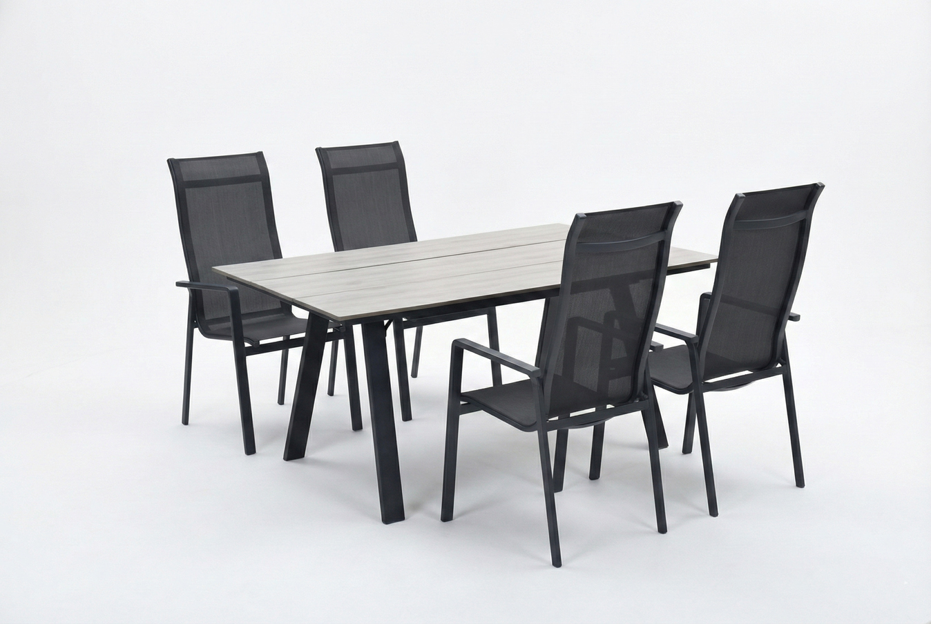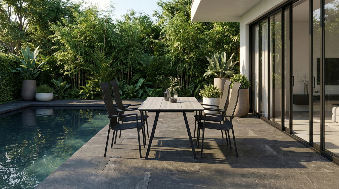 Robustní hliníkový stůl o velikosti 205cm s deskou Polywood: highlightem soupravy je elegantní hliníkový stůl, který je lehký, stabilní a odolný vůči povětrnostním vlivům. Deska z moderního Polywoodu dokonale nahrazuje přírodní dřevo, ale bez náročné údržby. Je rezistentní vůči UV záření, dešti i mrazu, což zaručuje krásný vzhled po mnoho let.