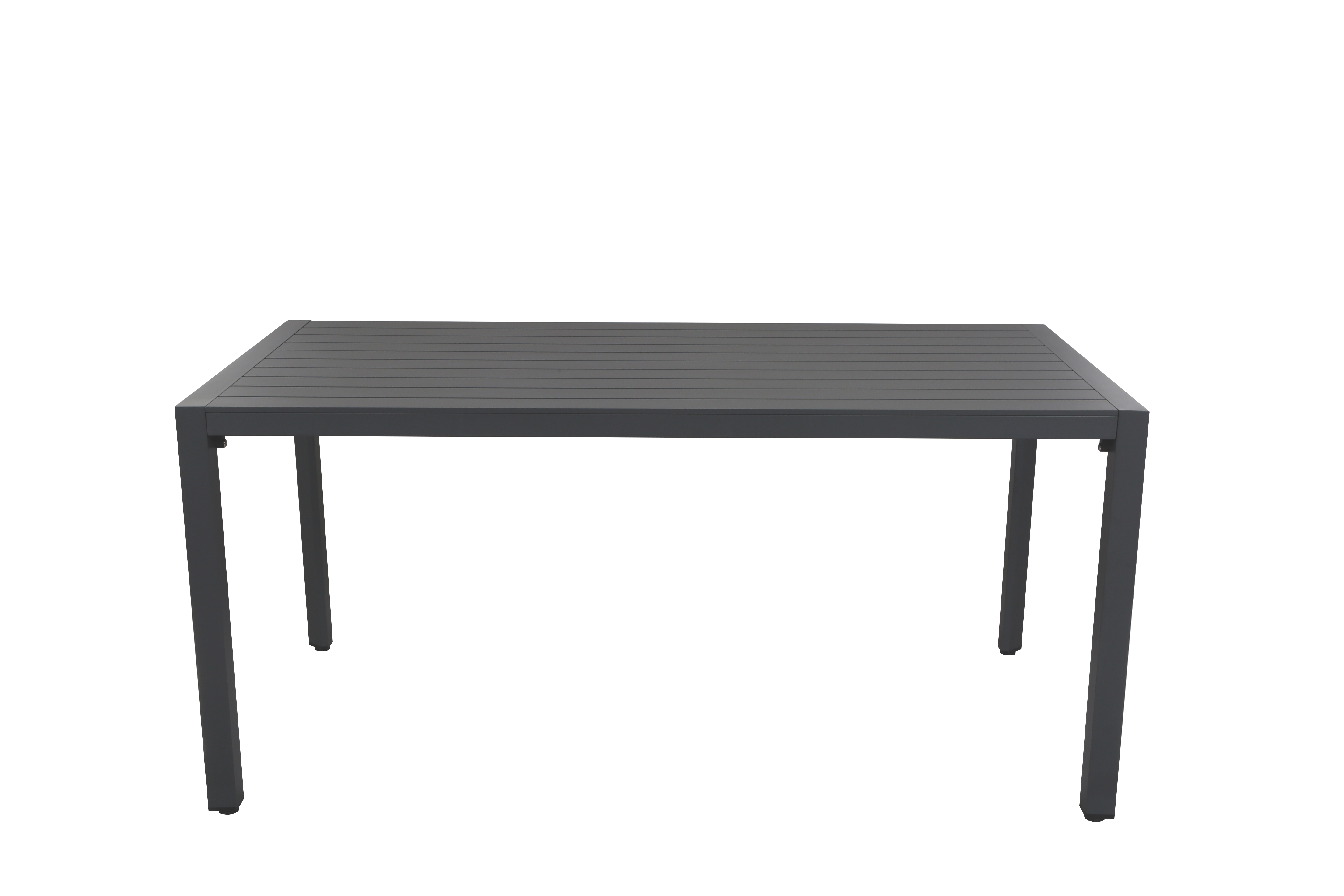 Stůl (160 cm): Prostorný jídelní stůl poskytuje pohodlné místo pro 6 osob. Jeho robustní hliníková konstrukce je 100% bezúdržbová a snadno se čistí.
