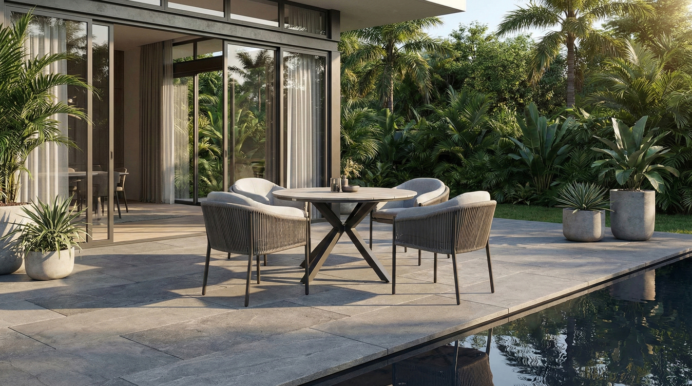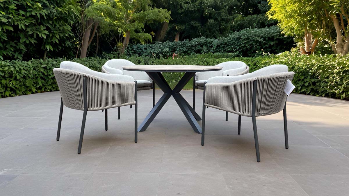Objevte luxusní zahradní jídelní set Magna 4, ideální pro vytvoření dokonalého prostředí k relaxaci a posezení s rodinou i přáteli. Tato elegantní souprava zahrnuje čtyři mimořádně pohodlná křesla v moderním rope designu, která kombinují styl a komfort. Křesla jsou osatena cockpit měkkými a odnímatelnými polštáři, které zvyšují pohodlí při dlouhých letních večerech na zahradě. Všechny polstry jsou osazeny zipy pro snadnou manipulaci při praní. Součástí setu je také robustní kulatý zahradní stůl s průměrem 122 cm, jehož design s hliníkovou základnou zaručuje stabilitu a moderní vzhled. Deska stolu je vyrobena z téměř bezúdržbového polywoodu. Polywood je odolný vůči vlhkosti, UV záření a dalším vnějším vlivům, vypadá jako dřevo, bez pravidelné nutnosti údržby a vypadá skvěle. Set Magna 4 je vyroben z vysoce kvalitních materiálů odolných vůči povětrnostním vlivům, což z něj činí skvělou volbu pro venkovní použití. Perfektní pro terasy, zahrady nebo patio – tento set přidá vašemu venkovnímu prostoru šarm a funkčnost. Užijte si luxusní posezení pod širým nebem se zahradním setem Magna4.