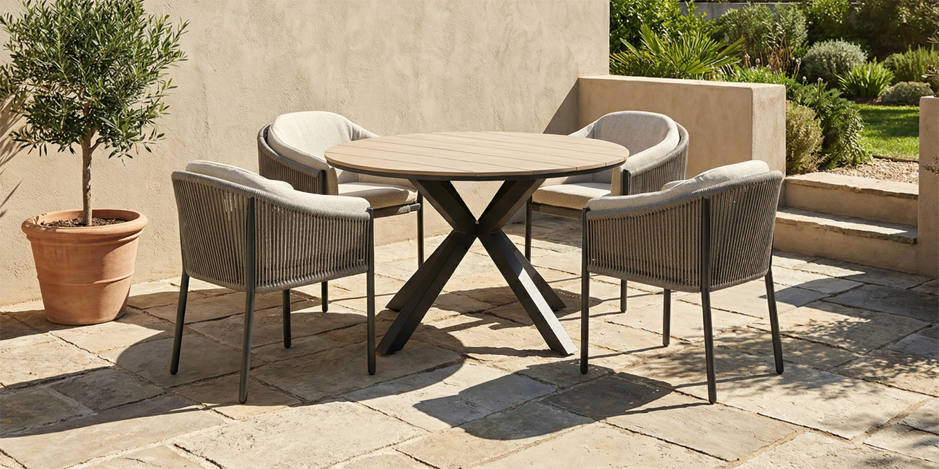 Designová, pohodlná a odolná zahradní sestava Magna4 stůl 122 cm