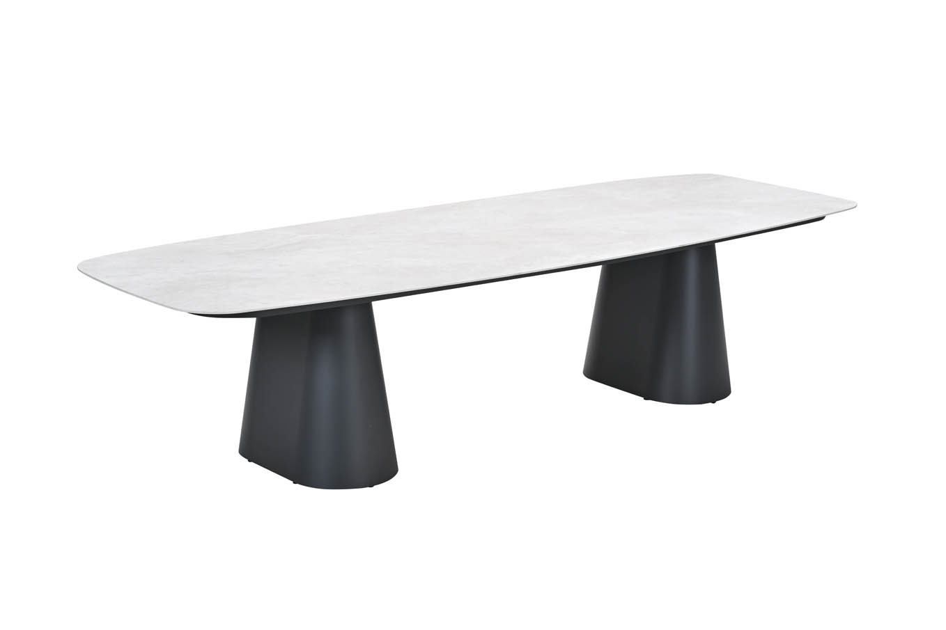 Konstrukce stolu Giante je vyrobena z vysoce kvalitního hliníku s ochranným práškovým nástřikem, který je odolný vůči povětrnostním vlivům. Díky tomu je stůl nejen pevný a stabilní, ale také prakticky bezúdržbový. Dvě široce rozkročené nohy dodávají designu moderní, architektonický ráz, zatímco zaoblené rohy stolové desky vytvářejí elegantní rovnováhu mezi robustností a jemností.