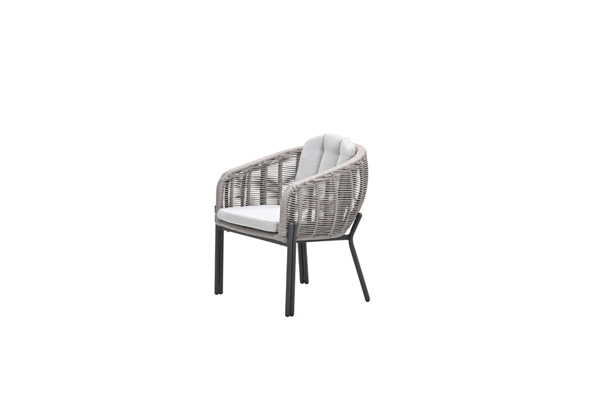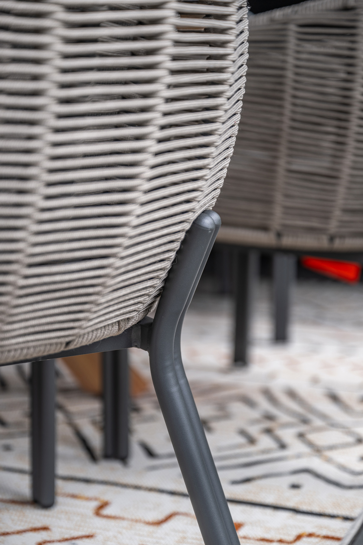 Rám venkovní židle Florence je vyroben z hliníku, který je chráněn nanesenou vrstvou práškového laku. Záda a područky jsou vypleteny ručně tkaným Rope výpletem. Tento materiál je mimořádně vhodný pro venkovní použití, protože je odolný vůči všem povětrnostním vlivům a je stálobarevný. Pohodlné polštáře už jen doplňují celkový design a pohodlí těchto designových zahradních křesel.