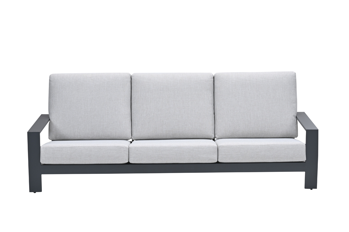 Proměňte svou terasu v oázu klidu s designovou zahradní sestavou Vector3. Tato souprava, tvořená prostornou třímístnou pohovkou a minimalistickým konferenčním stolkem, představuje dokonalou rovnováhu mezi moderním industriálním stylem a maximálním pohodlím.