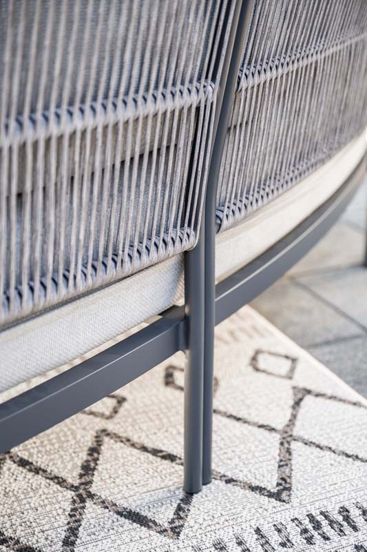 Pohovka View se pyšní moderním a elegantním designem, který okamžitě upoutá pozornost a dodá vašemu venkovnímu prostoru punc luxusu. Její tvar je promyšlen do posledního detailu, aby nejen vizuálně lahodil oku, ale také poskytoval maximální ergonomii. Jedním z nejvýraznějších prvků jsou opěrky s trendy rope výpletem. Tento detail dodává pohovce lehkost, vzdušnost a jedinečný charakter, který ji odlišuje od běžného zahradního nábytku. Rope výplet je navíc odolný vůči povětrnostním vlivům a zajišťuje dlouhou životnost.