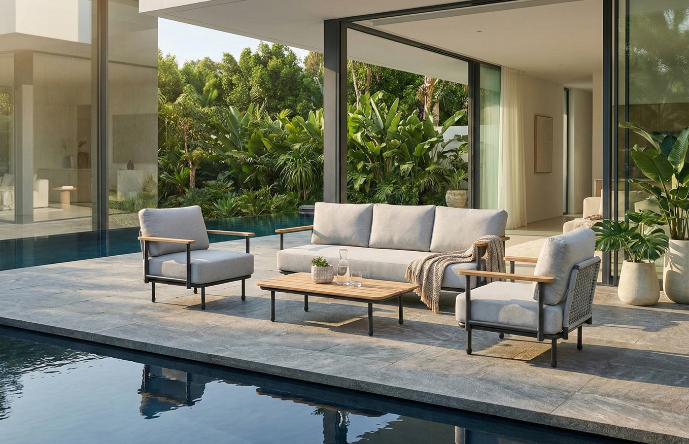Hledáte dokonalou rovnováhu mezi moderním designem a útulností? Sedací souprava Kanso je navržena v aktuálně nejžádanějším stylu Japandi, který spojuje funkčnost s japonskou estetikou minimalismu. Tento set promění vaši zahradu či terasu v luxusní venkovní obývací prostor.