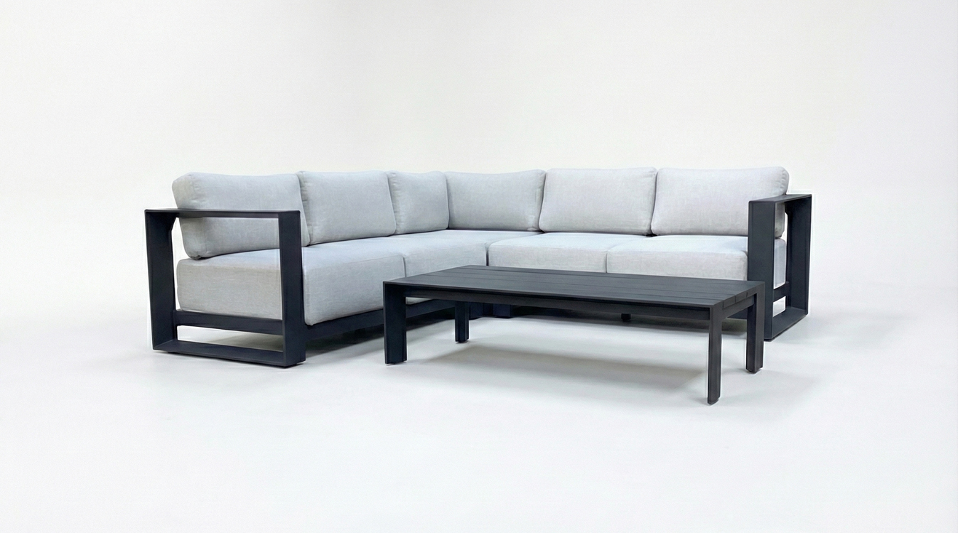 Vytvořte si stylové a pohodlné venkovní posezení s naší rohovou hliníkovou sedací soupravou Accordia5 Corner. Tato moderní sestava obsahuje rohovou pohovku a praktický konferenční stolek. Vychutnejte si maximální komfort díky silnému a pohodlnému polstrování.