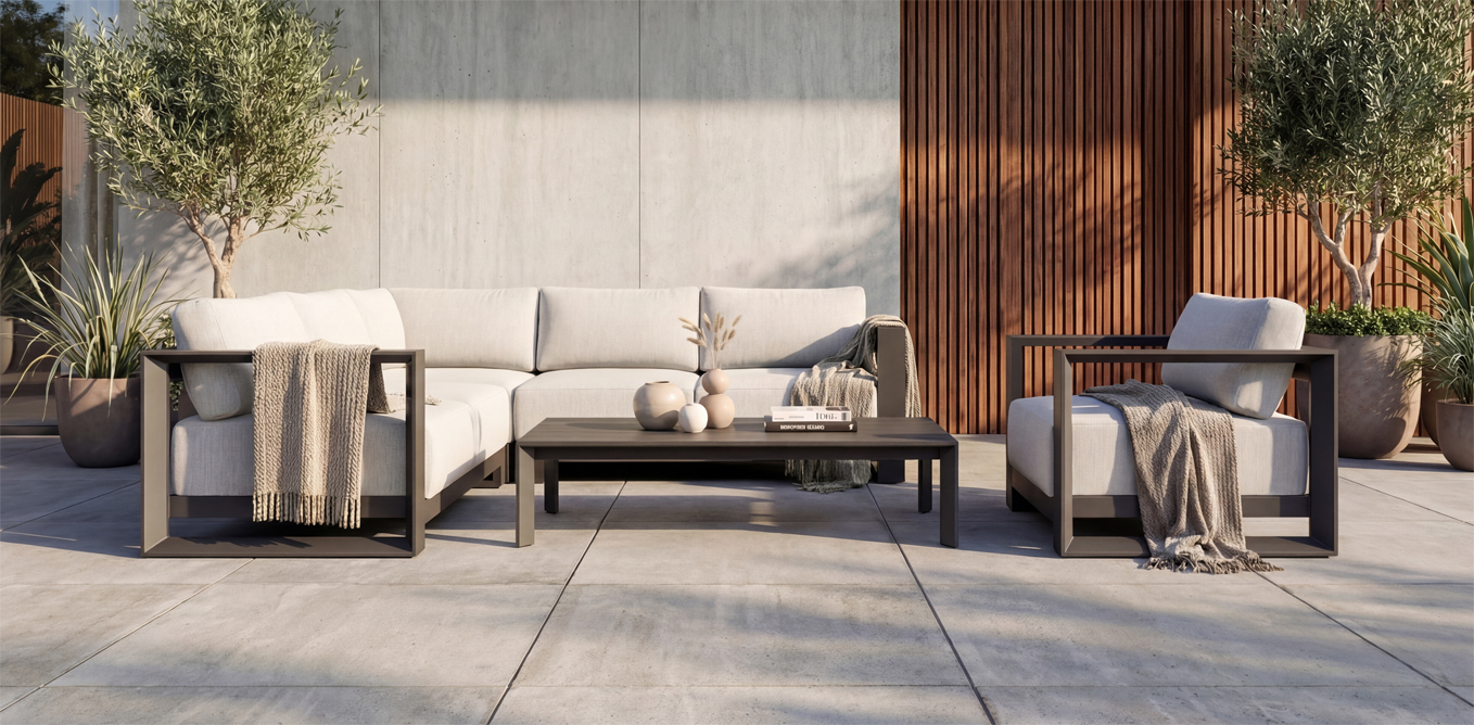 Robustní, pevná a mimořádně lehká hliníková konstrukce, pěnová výplň polstrů a vysoce kvalitní designová tkanina, tvoří ideální celek nábytku na Vaši terasu. Kvalitní, designový nábytek Accordia6 je tu pro Vás. Designová hliníková zahradní sedací souprava Accordia6