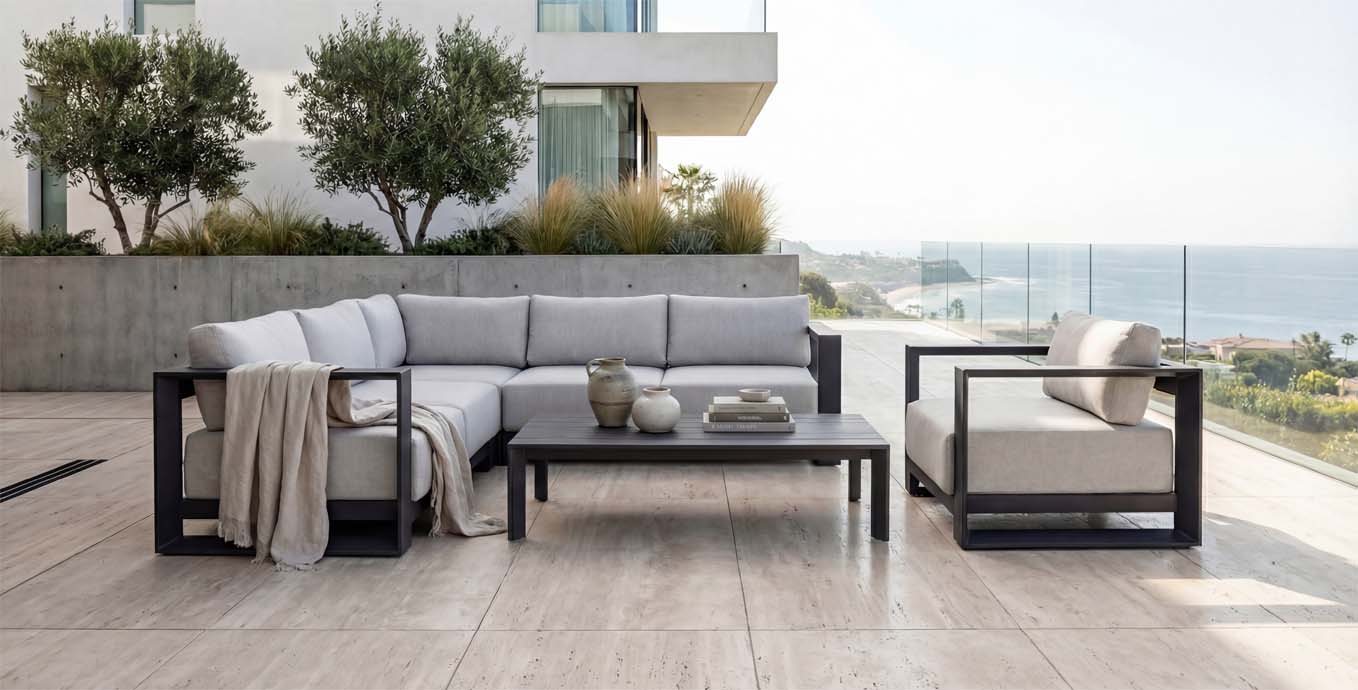 Robustní, pevná a mimořádně lehká hliníková konstrukce, pěnová výplň polstrů a vysoce kvalitní designová tkanina, tvoří ideální celek nábytku na Vaši terasu. Kvalitní, designový nábytek Accordia6 je tu pro Vás. Designová hliníková zahradní sedací souprava Accordia6