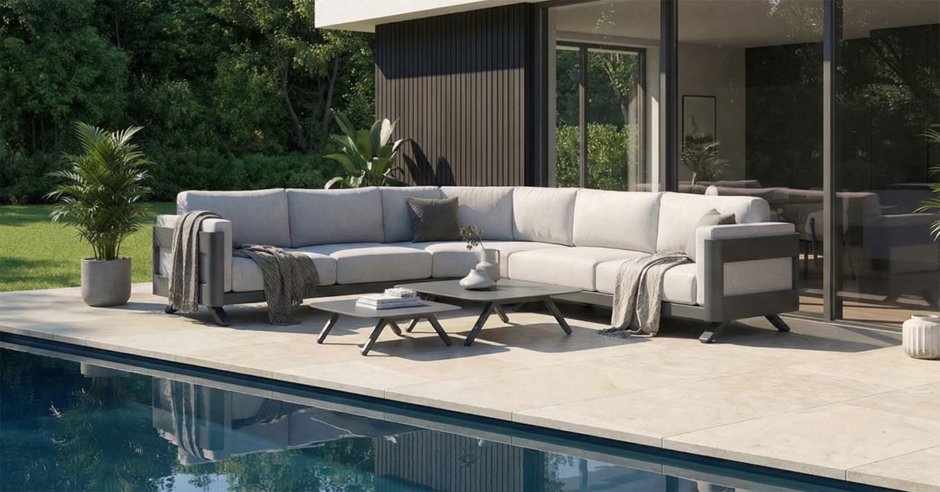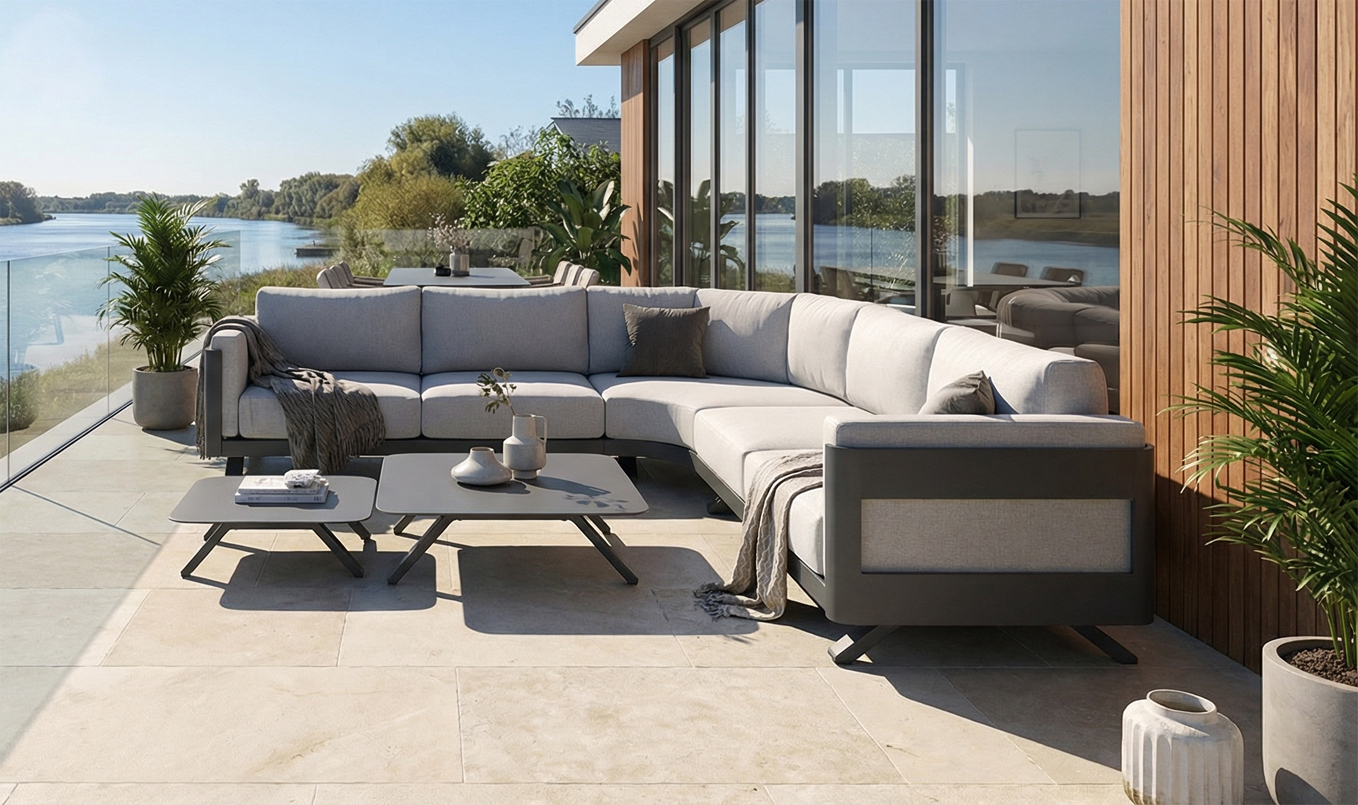 Luxusní, rohová a mimořadně pohodlná zahradní sedací souprava z odolného hliníku Governa s elegantními oblými hranami a 12 cm silnými, odnímatelnými polstry. Ideální odolná, pohodlná a designová sedací souprava na Vaši terasu. Tato robustní hliníková zahradní sedačka se silným polstrováním, je skvělá pro vytvoření útulného a stylového posezení na vaší terase či zahradě. Souprava zahrnuje pohodlné sedáky a robustní opěrky, které zaručují maximální komfort užívání. Dva praktické konferenční stolky z hliníku doplňují celkový design a poskytují dostatek prostoru pro nápoje a drobnosti. Odolná konstrukce zaručuje mimořádně dlouhou životnost.