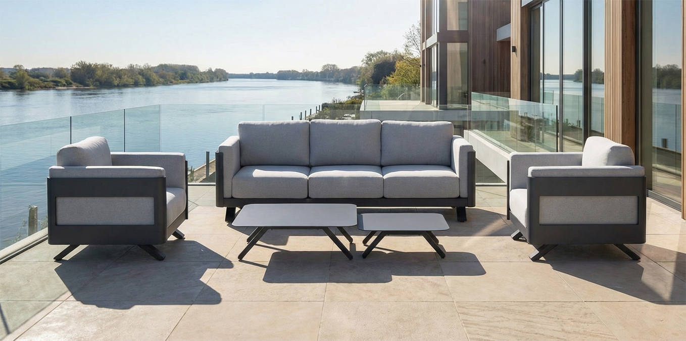 Luxusní zahradní hliníkový nábytek Governa5 - kde naším cílem je sledovat současný trend moderního robustního designu, v kombinaci s vysokým standardem komfortu a mimořádně odolnou hliníkovou konstrukcí. Věříme, že se nám to povedlo a získáváte návrhářsky exklusivní kus hliníkového zahradního nábytku, který skvěle využijete i v interiéru, jednoduše všude tam, kde potřebujete odolný nábytek, kde design a komfort užití je naprosto vhodný i do Vaší zimní zahrady, hotelové lobby, firemní prostory a mnoha dalších.