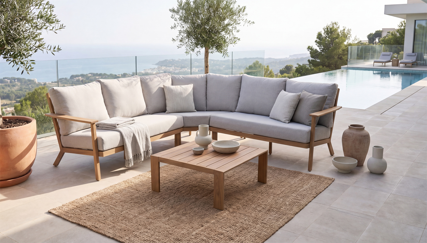 Rohová venkovní sedací souprava Lignum Classic5 Corner – Design dřeva, odolnost hliníku