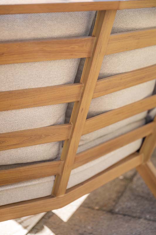 Tajemství soupravy Lignum tkví v pevném a lehkém hliníkovém rámu. Ten je ošetřen povrchovou úpravou v tak dokonalém designu dřeva, že je na pohled i dotek téměř k nerozeznání od pravé masivní konstrukce.