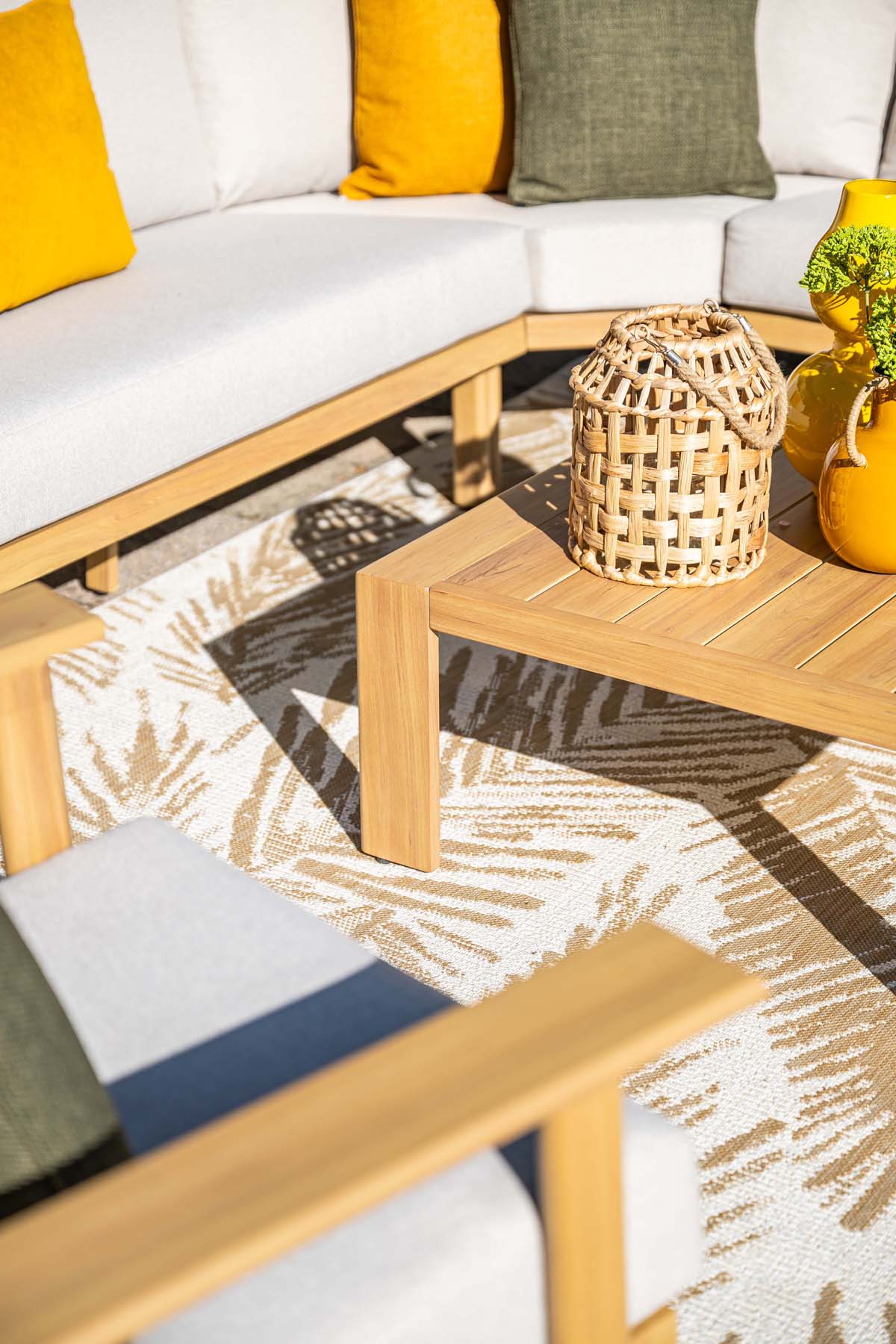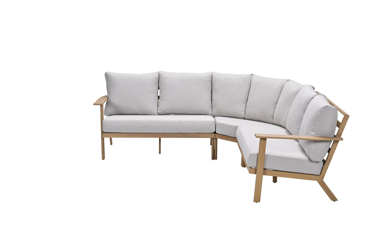 Rohová venkovní sedací souprava Lignum5 Corner – Design dřeva, odolnost hliníku