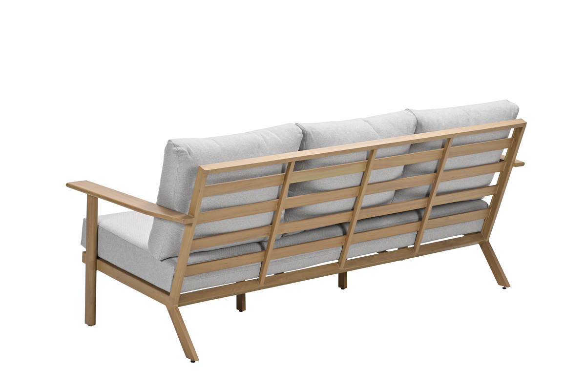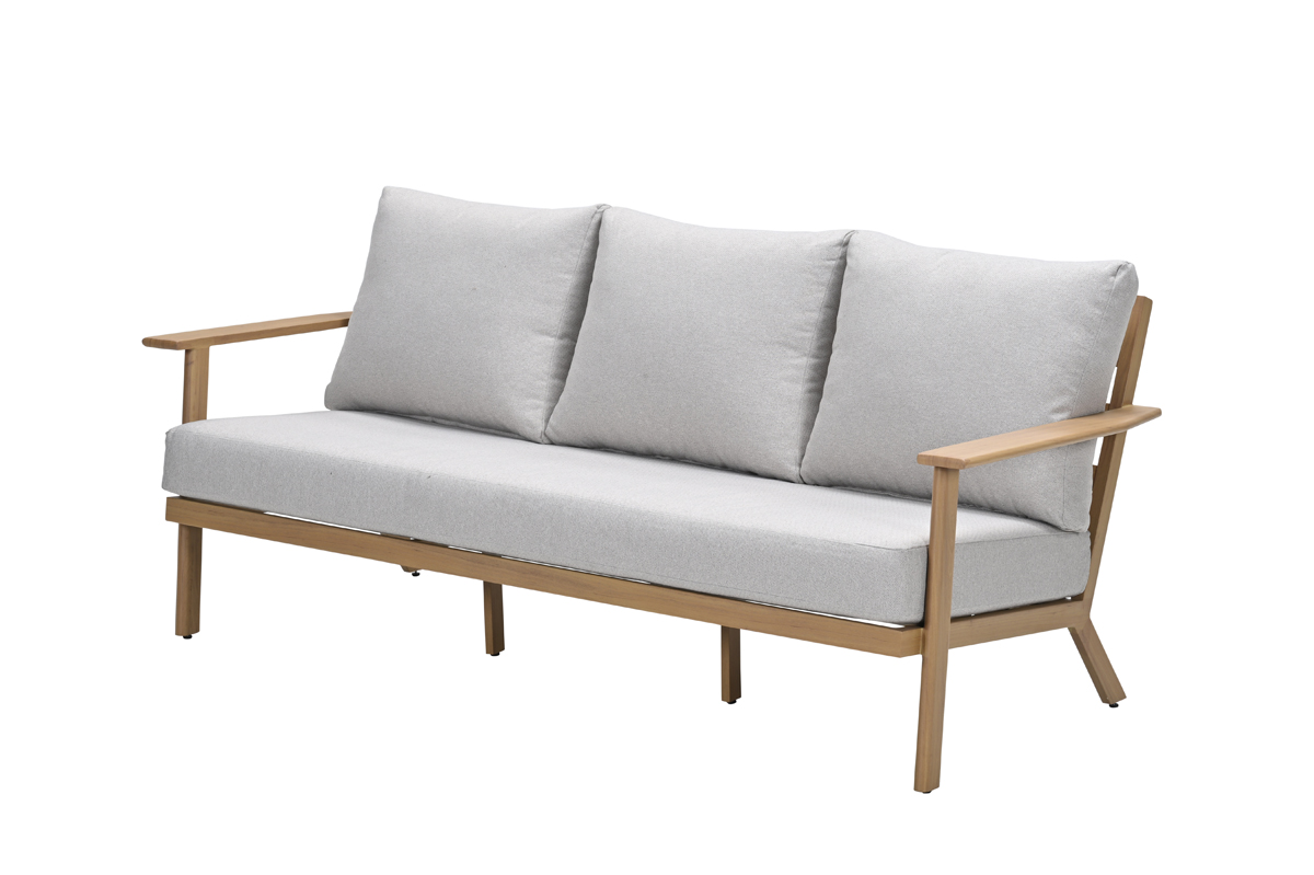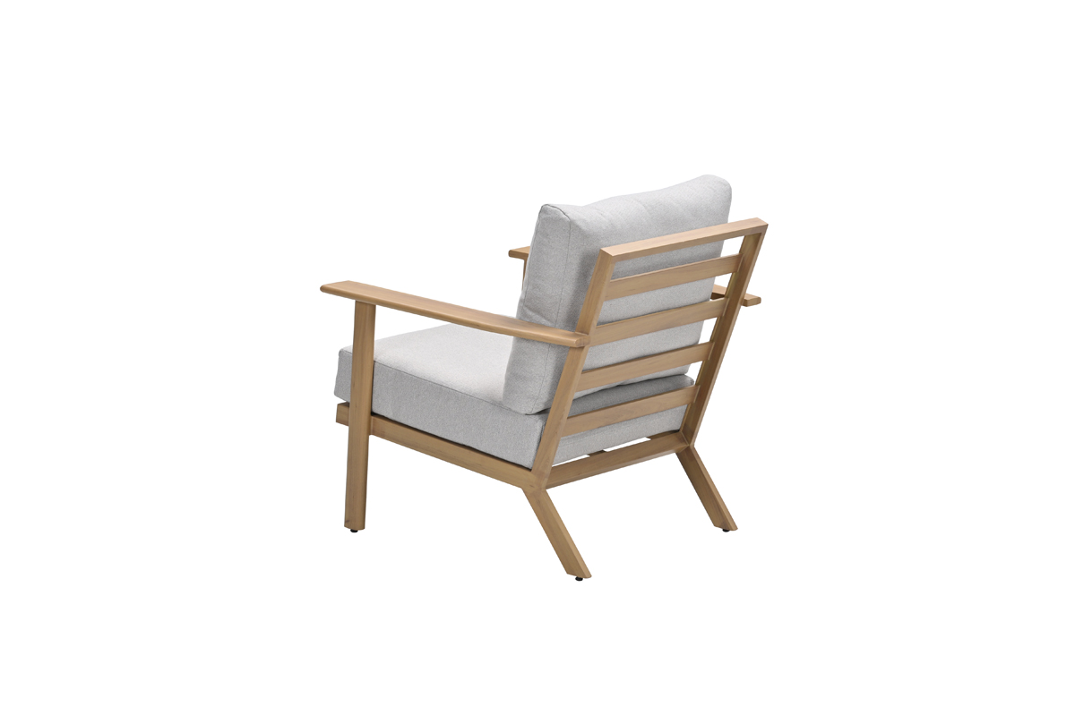 Tajemství soupravy Lignum tkví v pevném a lehkém hliníkovém rámu. Ten je ošetřen povrchovou úpravou v tak dokonalém designu dřeva, že je na pohled i dotek téměř k nerozeznání od pravé masivní konstrukce.