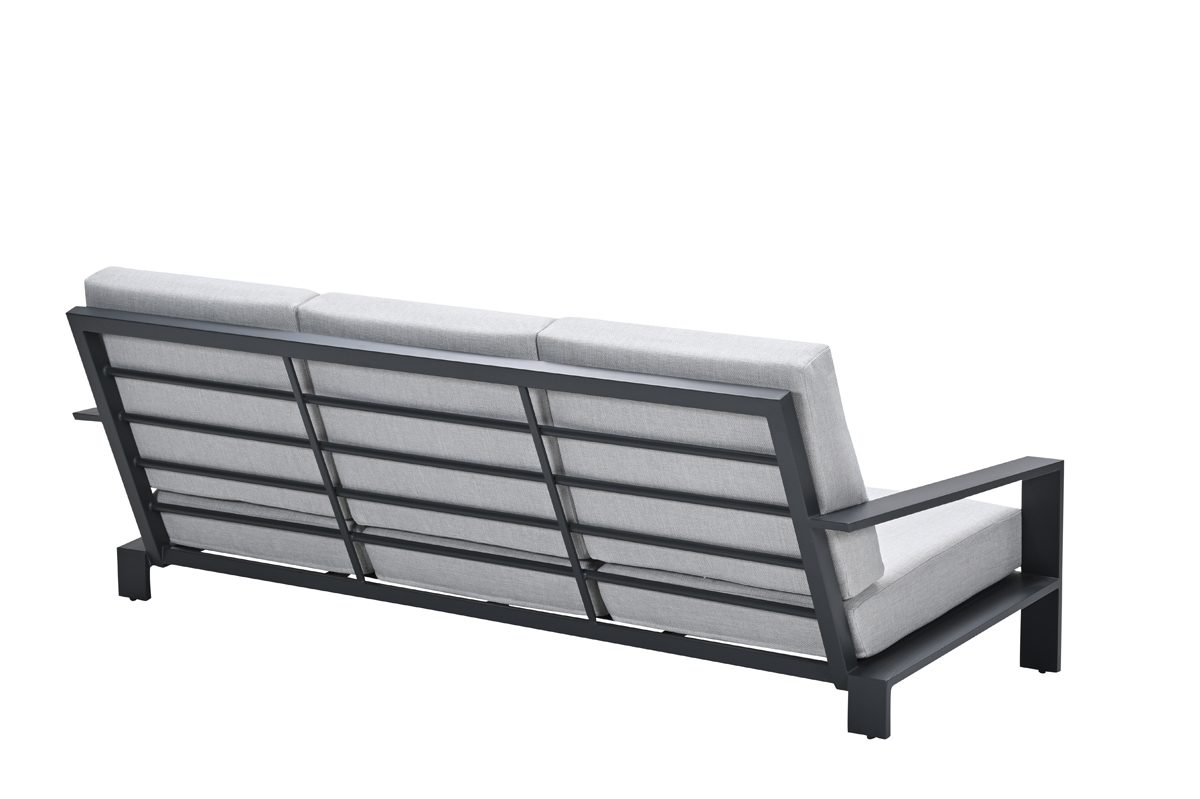 Hliníkový zahradní nábytek Vector Vám přináší maximální ergonomií: Vysoká zádová opěrka a sklon sedáků jsou navrženy pro zdravý a pohodlný odpočinek. Kvalitní odnímatelné polstry: Všechny polstry jsou vyrobeny z odolné tkaniny. Jsou plně odnímatelné a opatřené praktickými zipy pro snadné čištění a údržbu. Venkovní sestava Vectra pro 5 osob: Samostatnou pohovku o velikosti 230cm, 2x samostatné křeslo a venkovní konfereční stolek.