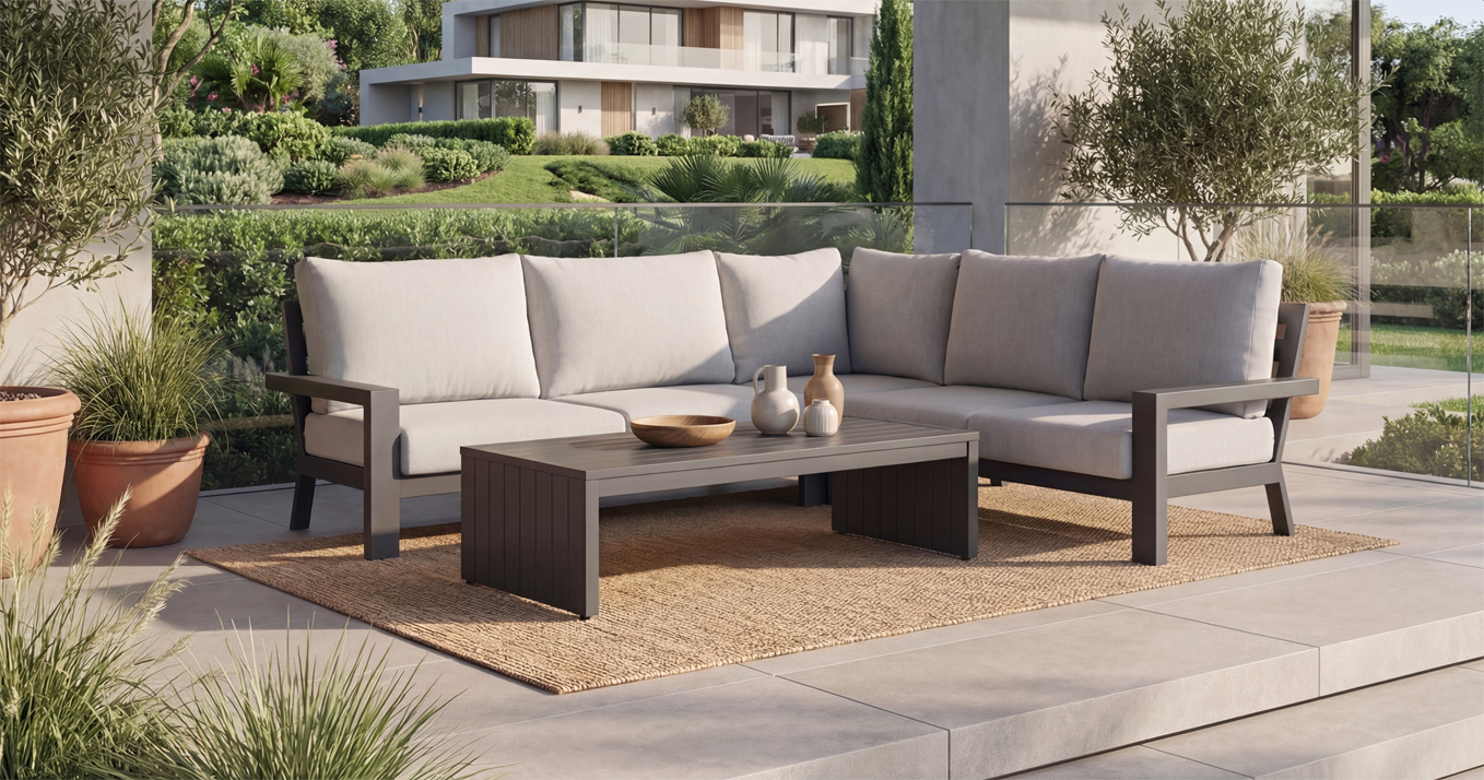 Venue: luxusní, prostorná hliníková rohová sedací souprava na Vaši zahradu či terasu