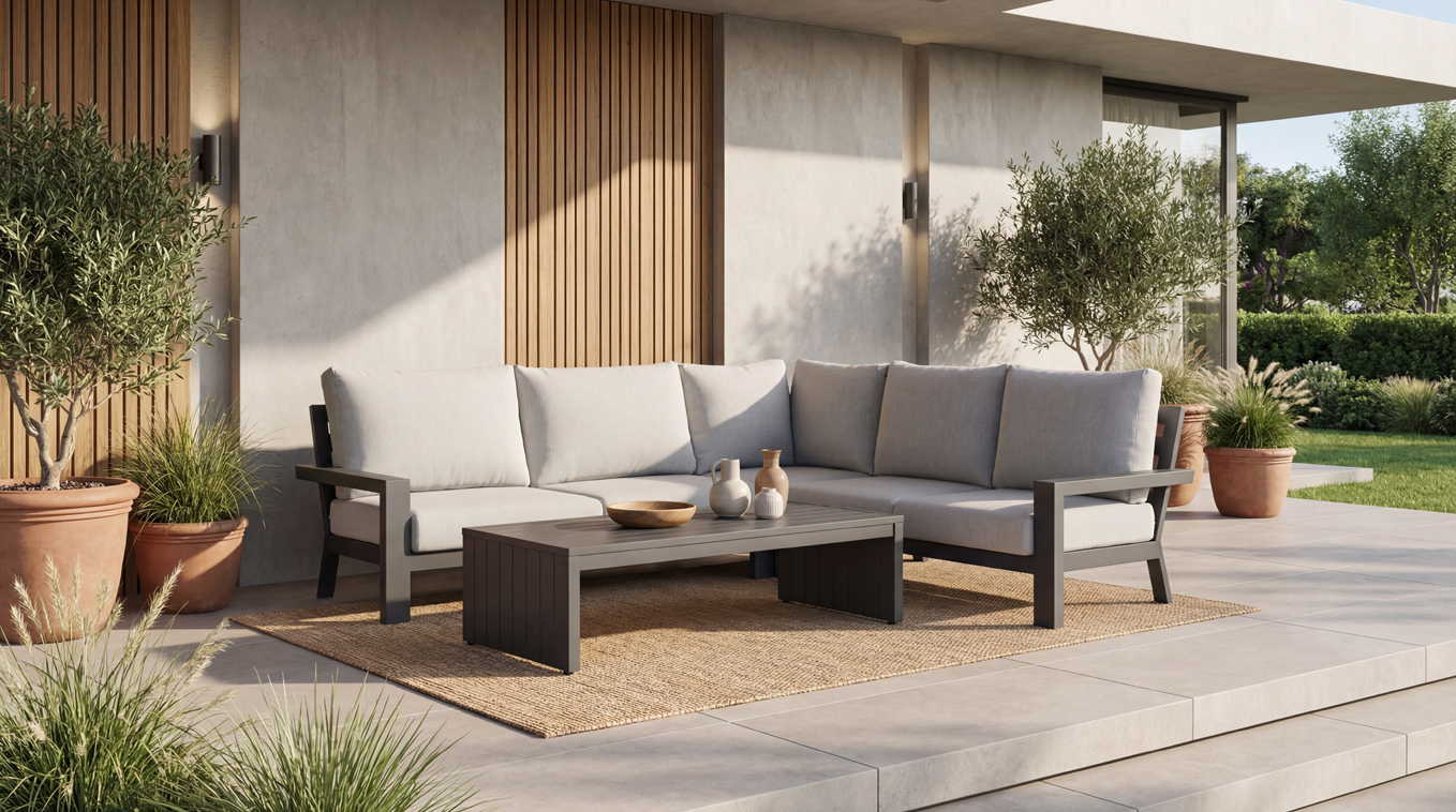 Jádrem sedací soupravy Venue5 je robustní hliníková konstrukce, která zaručuje mimořádnou pevnost, stabilitu a dlouhou životnost. Hliník je známý svou odolností vůči povětrnostním vlivům, jako je déšť, slunce a mráz, a zároveň je rezuvzdorný. Díky nízké hmotnosti je nábytek snadno přenosný, což oceníte při sezónních úpravách nebo úklidu. Povrchová úprava hliníku navíc dodává nábytku sofistikovaný matný vzhled a usnadňuje jeho údržbu – stačí otřít vlhkým hadříkem.