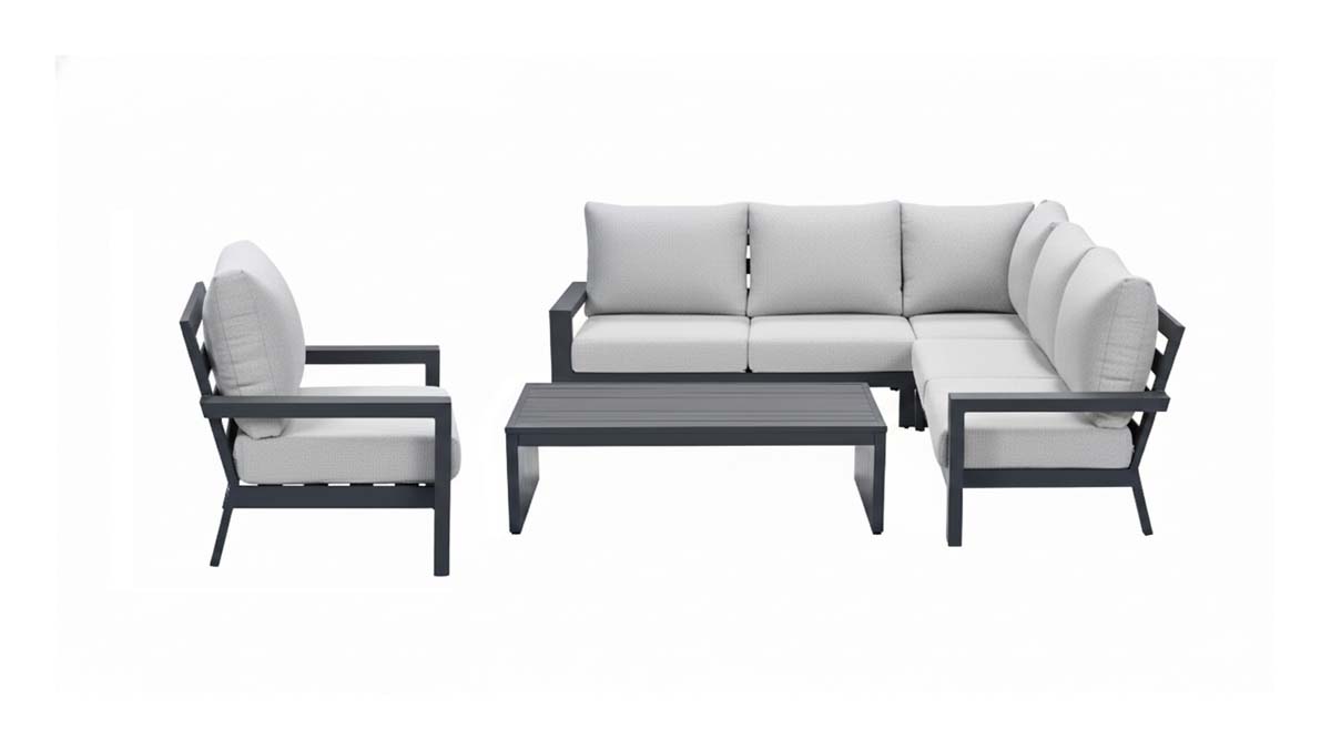 Sedací souprava Venue6 je navržena s důrazem na pohodlí, čisté linie a nadčasovou eleganci, která se hodí do každého moderního exteriéru. Set se skládá z prostorného rohové sedací části, která nabízí dostatek místa pro celou rodinu i přátele. Dále obsahuje samostatné pohodlné křeslo, které poskytuje flexibilitu v uspořádání a další místo k sezení, a praktický konferenční stolek, ideální pro odložení nápojů, knih nebo dekorací. Díky modulárnímu designu si můžete uspořádání přizpůsobit přesně podle vašich představ a velikosti prostoru.