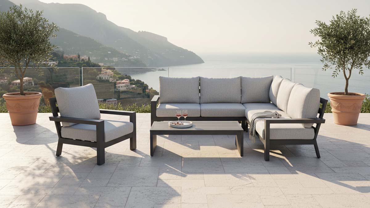 Venue: luxusní, odolná a pohodlná hliníková rohová sedací souprava na Vaši zahradu či terasu
