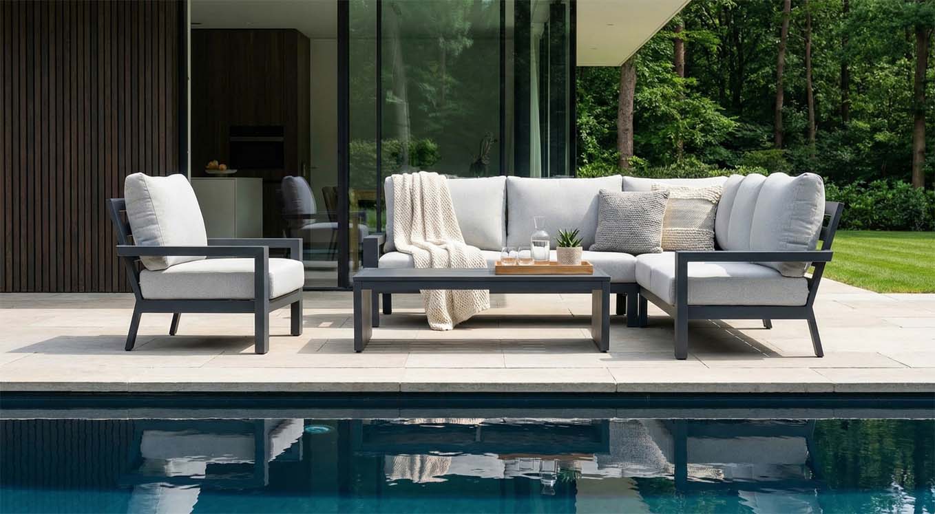 Venue: luxusní, odolná a pohodlná hliníková rohová sedací souprava na Vaši zahradu či terasu 255 cm